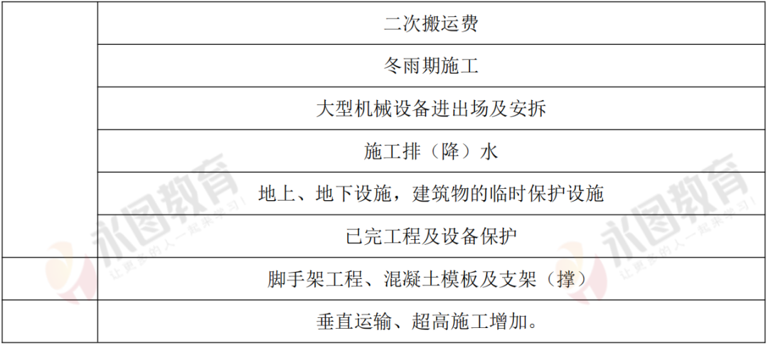 2)其他项目费。内容包括:暂列金额、计日工、总承包服务费、暂估价。其中暂估价又包括材料暂估单价、工程设备暂估单价、专业工程暂估单价。 总承包服务费(又称总包管理费)是指总承包人为配合协调建设单位进行的专业工程发包,对建设单位自行采购的材料、工程设备等进行保管以及施工现场管理、竣工资料汇总整理等服务所增加的管理人员工资、管理费等,通常专业工程造价(不含设备款)的 1%-3%收取,由建设单位支付。 如有超出合同规定范围的配合及服务,例如专业分包使用总包单位的施工塔式起重机、电梯、脚手架、门窗洞口封堵以及协助工程抢工等,则由专业单位另行按实支付。 3)规费:五险一金(生老病伤失)+(工程排污费)